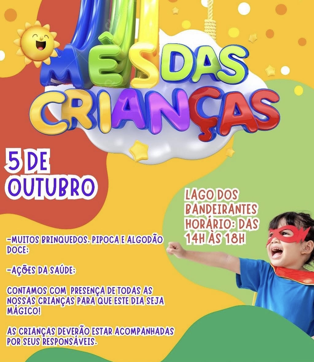 A tarde deste domingo (5) promete ser de muita diversão para os pequeninos de Silvianópolis, onde um grande evento acontece no Lago dos Bandeirantes, das 14 às 18 horas. A ação faz parte das comemorações do Mês da Criança.