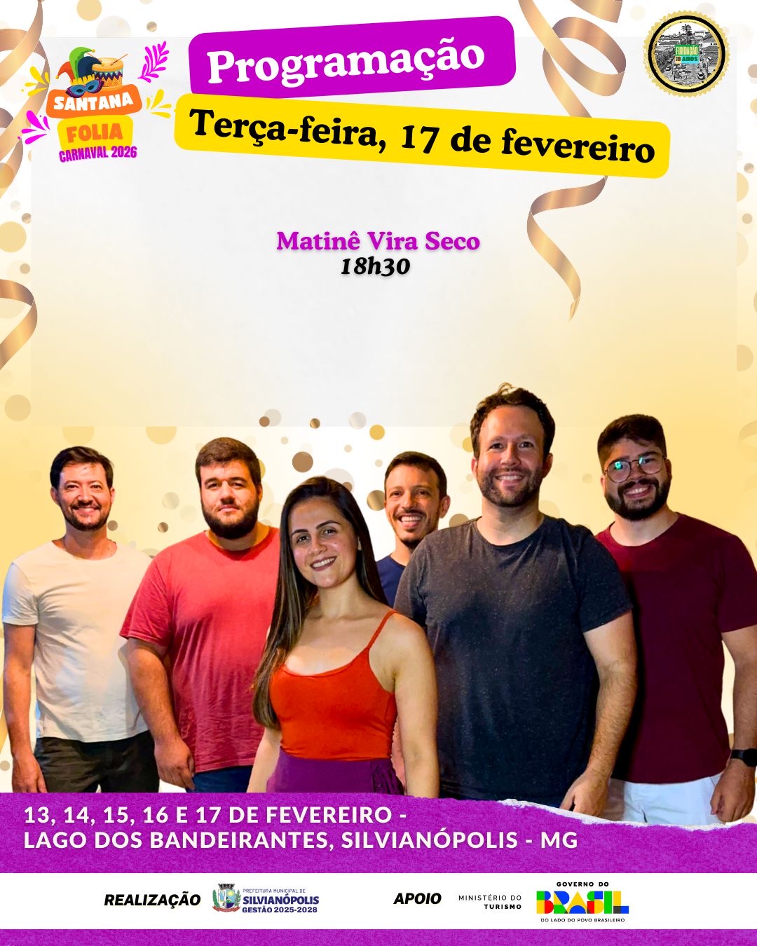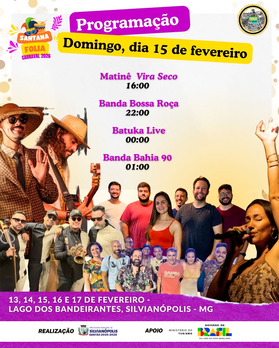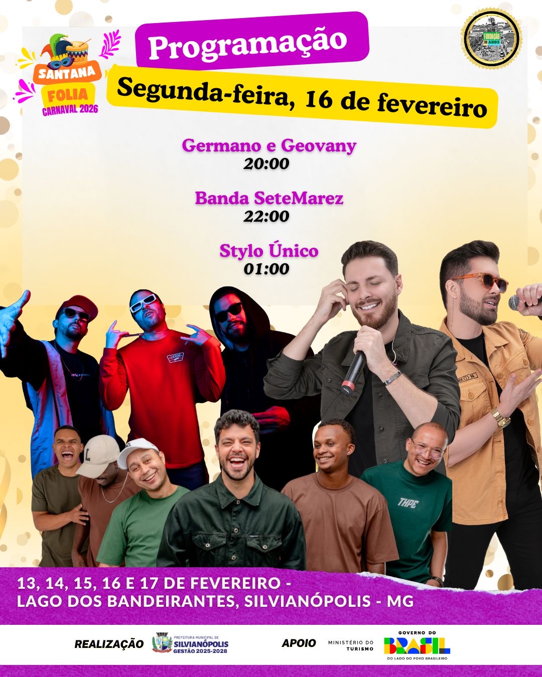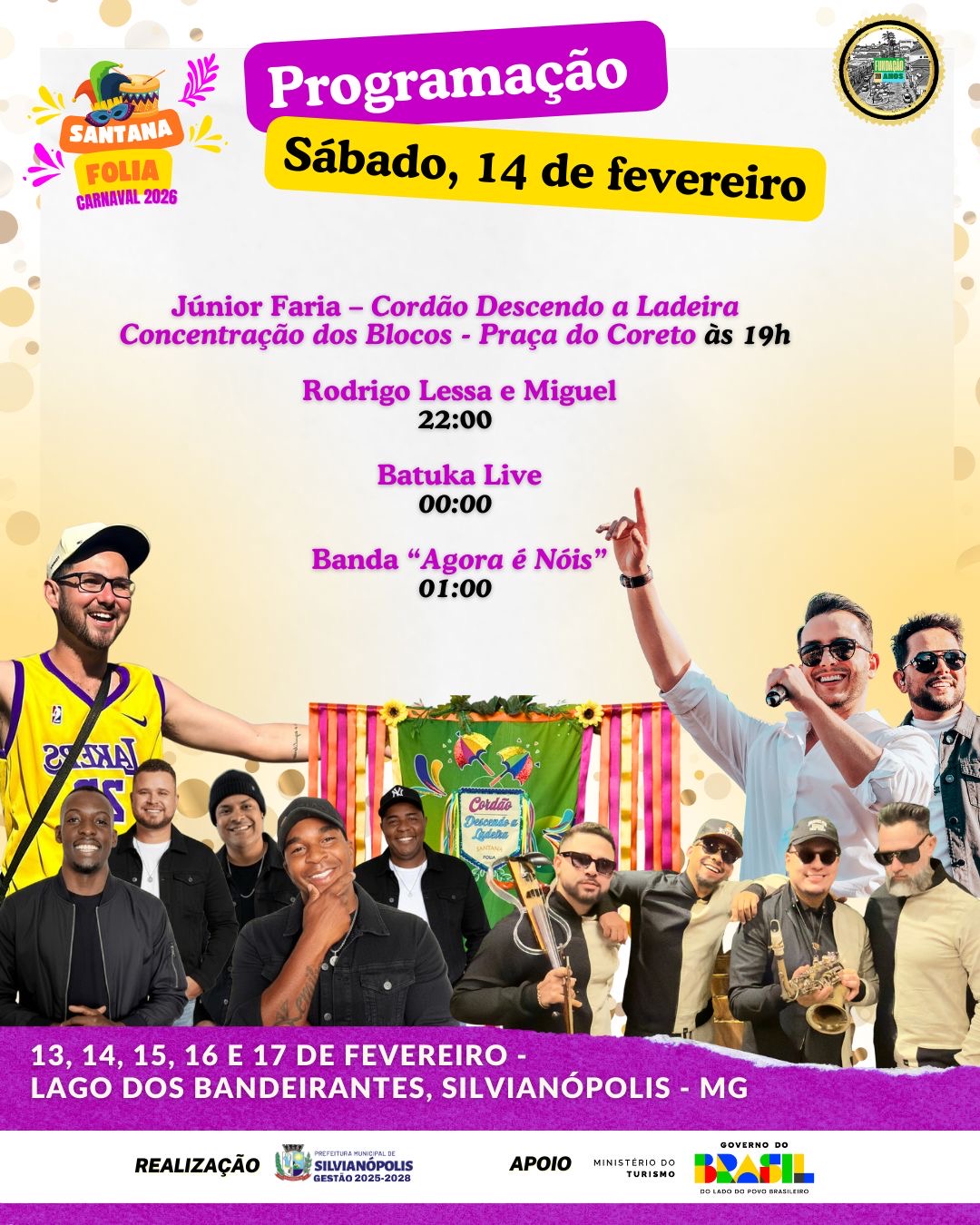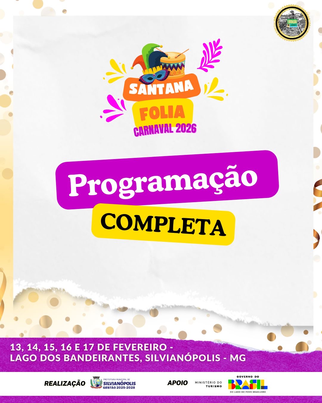 Atrações para todos os estilos e muitos dias de agitos. Assim promete ser o Santana Folia – Carnaval 2026, em Silvianópolis, que já está com sua programação completa. Organizado pela Prefeitura, através de Secretaria de Cultura e Turismo, o evento contará com apresentações de artistas locais e regionais que se apresentarão em um palco montado na orla do Lago Bandeirantes, o famoso “Tanque”.