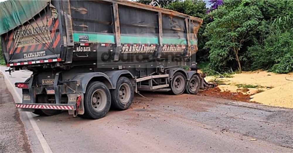 Um reboque carregado com soja que transitava sentido ao Porto de Santos – SP se desprendeu do conjunto que compunha e tombou no quilômetro 67 da rodovia MG 179, no trecho mais conhecido como “Curva do Crídio, em São João da Mata. Ninguém se feriu no acidente, mas o trânsito ficou prejudicado durante várias horas.