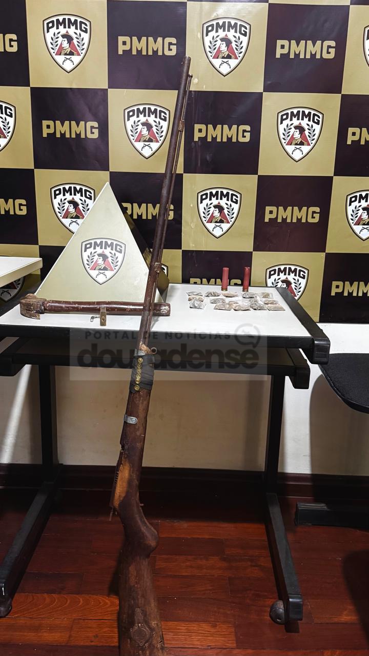 No decorrer das diligências, os policiais localizaram o autor em uma residência que havia sido invadida por ele. O imóvel, segundo relato do legítimo proprietário, estava desocupado, e a entrada irregular era desconhecida até então. No interior da casa, os militares encontraram uma espingarda e duas munições calibre .28, além de 15 porções de maconha.