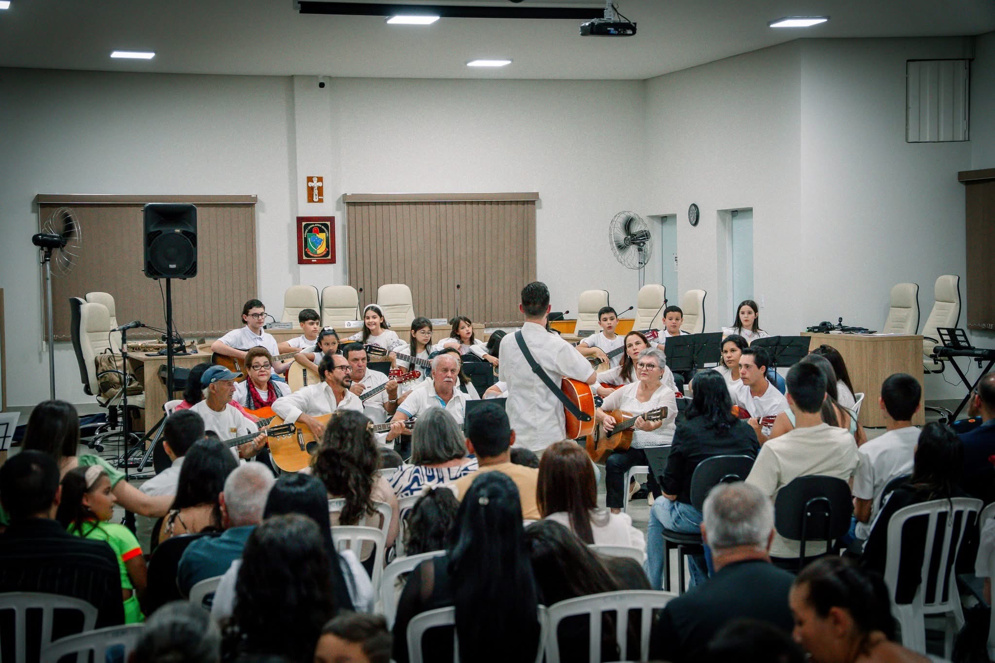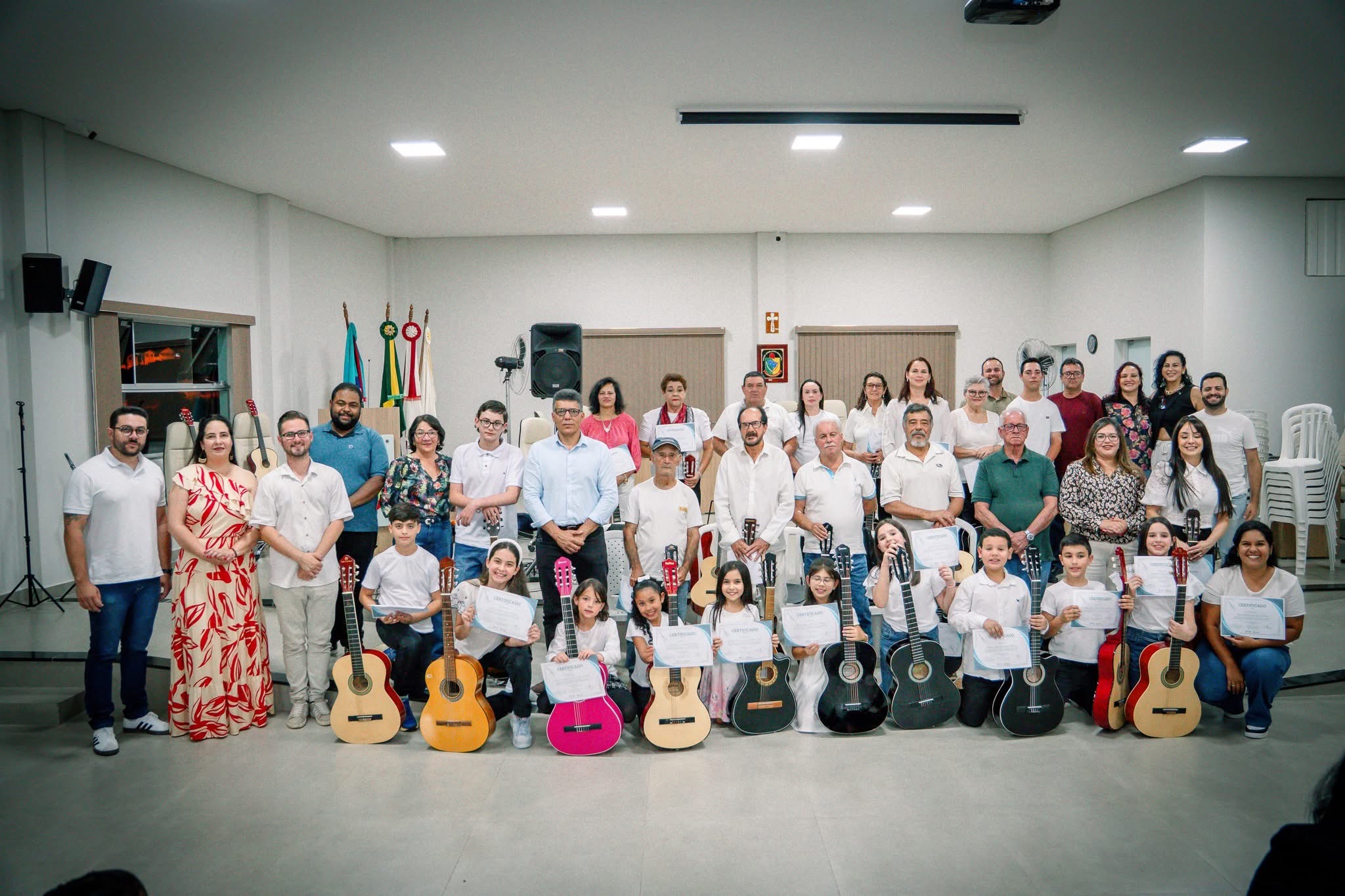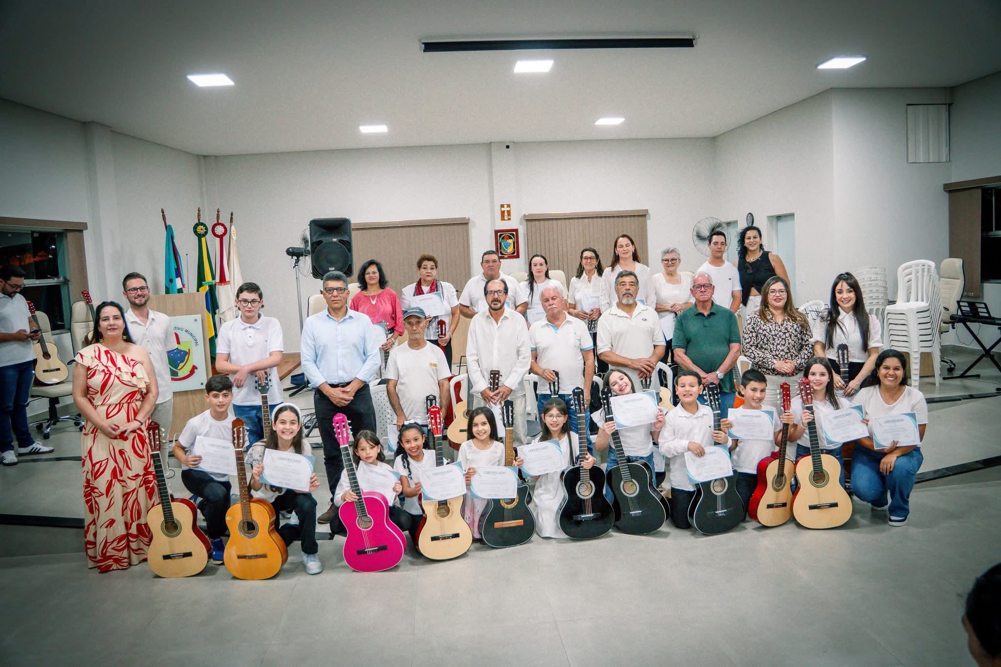 A programação começou na Sala Carlina de Moraes Dutra, na Câmara de Vereadores, com as apresentações das turmas dos projetos de cordas e de teclado da Secretaria de Cultura. Em seguida, o público foi encantado pelo “Saxofoniando”, que seguiu em cortejo até o Coreto da Praça.