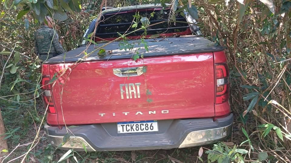 Nesta terça, a Polícia Militar Ambiental de Alfenas localizou a Fiat Torro abandonada em uma área de mata perto de uma lavoura de café. A perícia da Polícia Civil foi acionada e o veículo removido para um pátio credenciado do Detran. As investigações continuam.